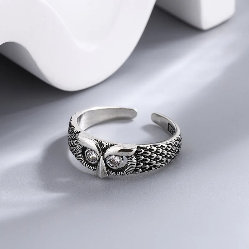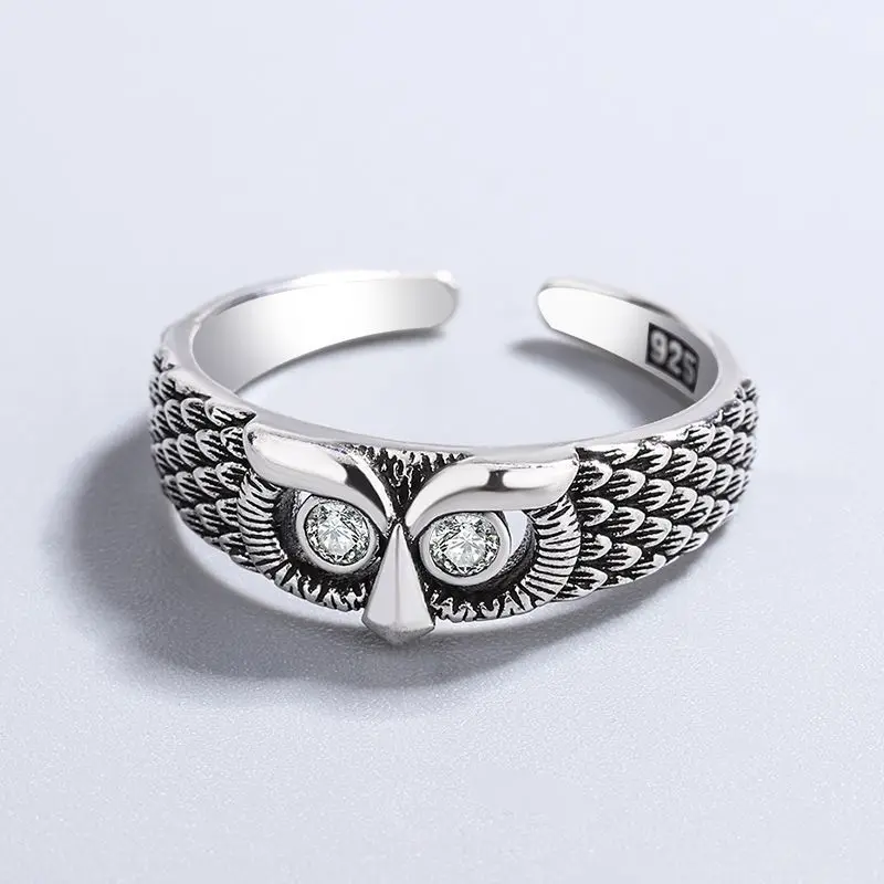 925 Sterling Silver Owl Zircon Rings For Women Female Vintage Jewelry Accessories Wholesale Jewellery