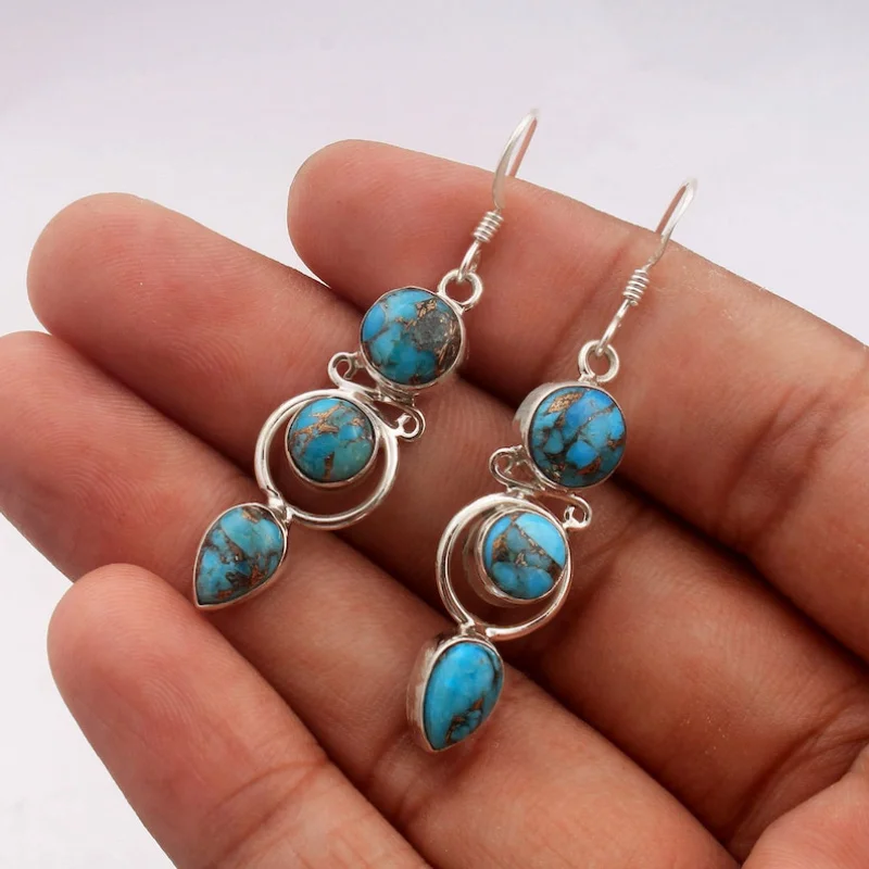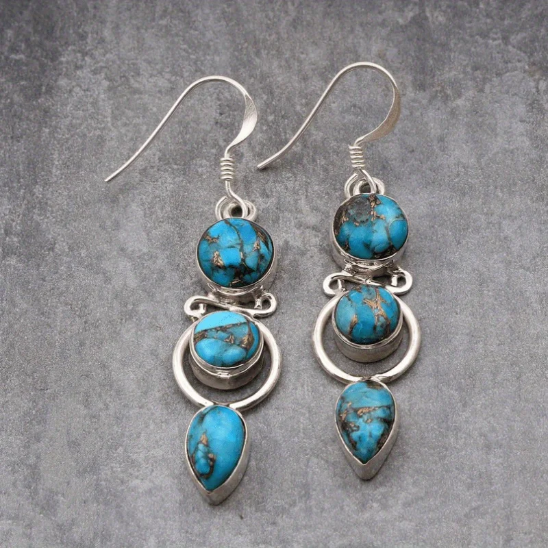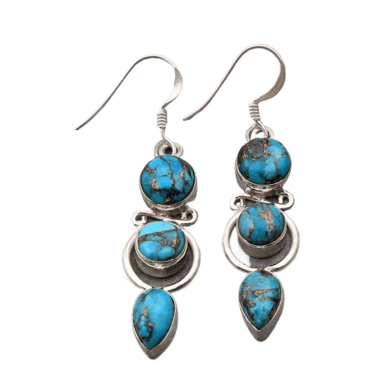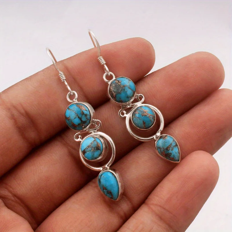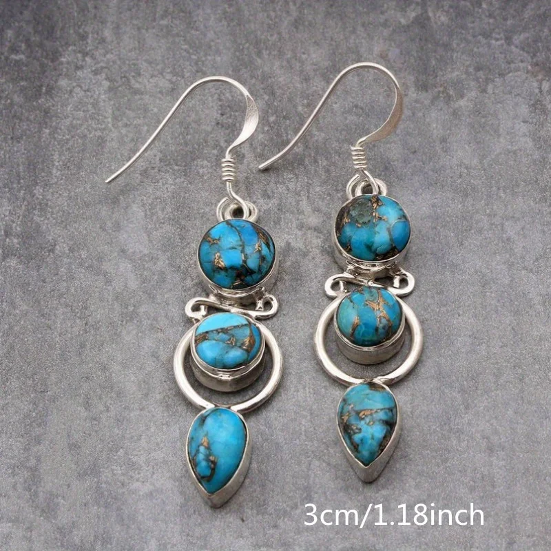Fashion Bohemian Faux Turquoise Long Hanging Dangle Earrings for Women Vintage Ethnic Style Jewelry Holiday Party Accessories