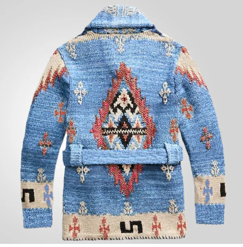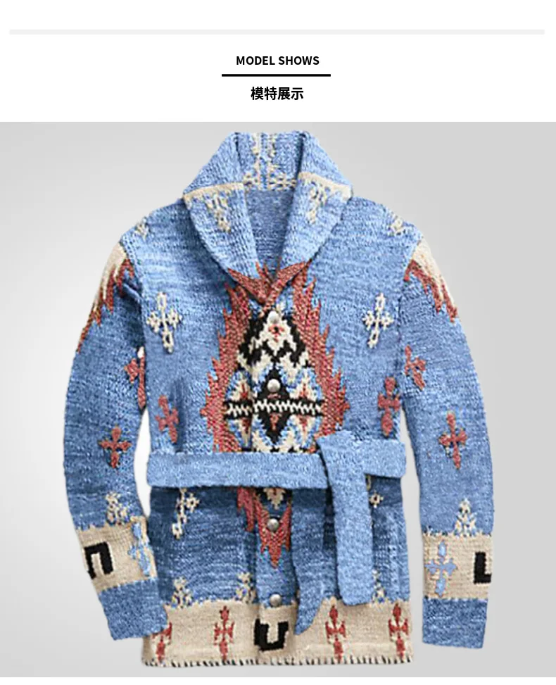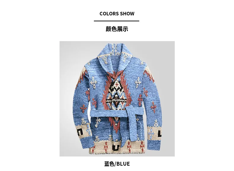 Retro Jacquard Male's Sweater Autumn Winter Thick Mid-length Knitted Jacket with Belt Men's Cardigan Embroidered Coat Streetwear
