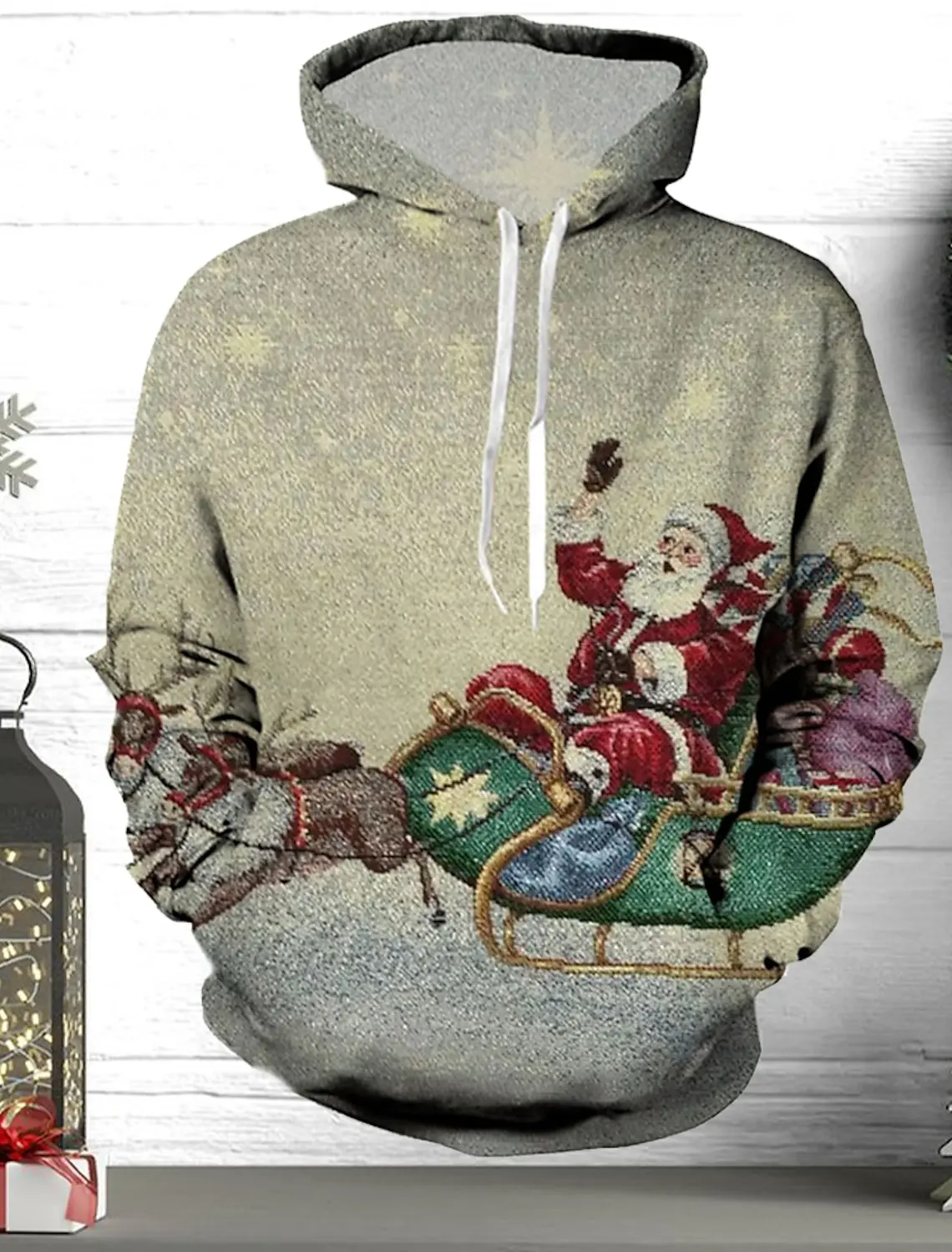 Santa Claus Men's Graphic Hoodie Fashionable Daily Basics Printed Pullover Sports Outdoor Vacation Vacation Hoodie