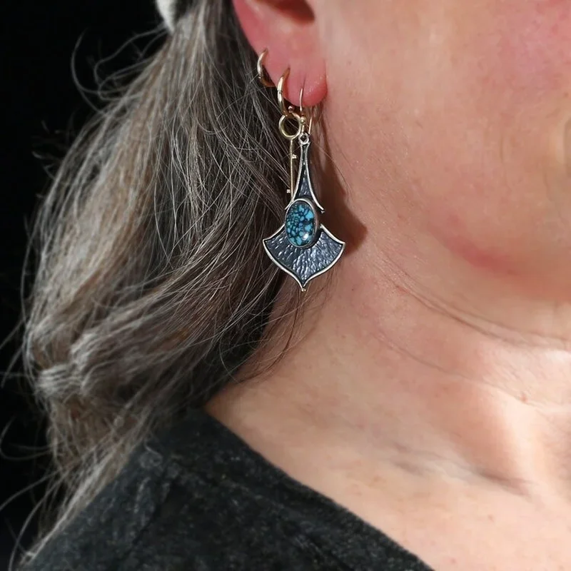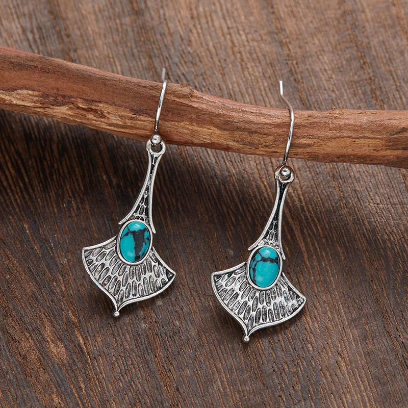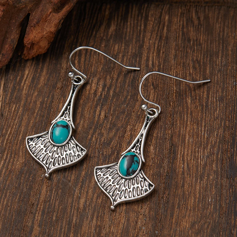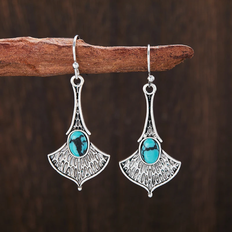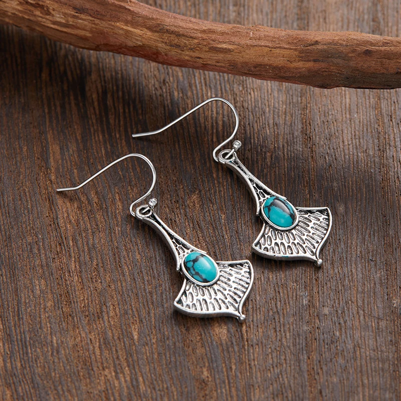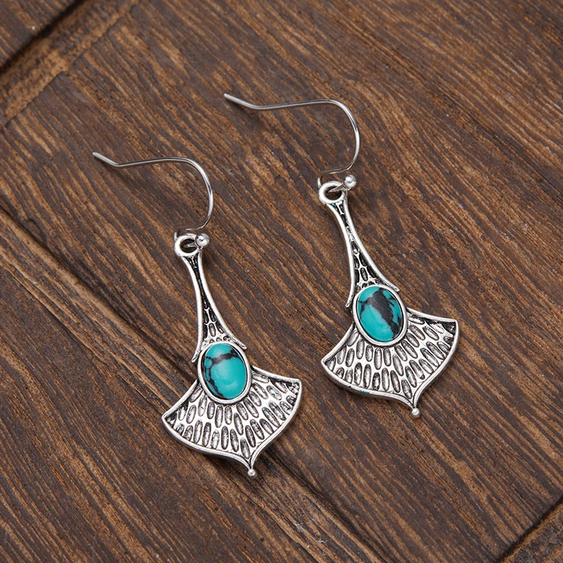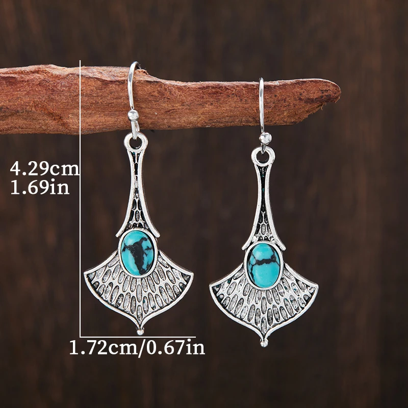 Vintage Bohemian Pendant Metal Inlaid Faux Turquoise Earrings Women's Hook Drop Earrings Elegant Ethnic Style Jewellery