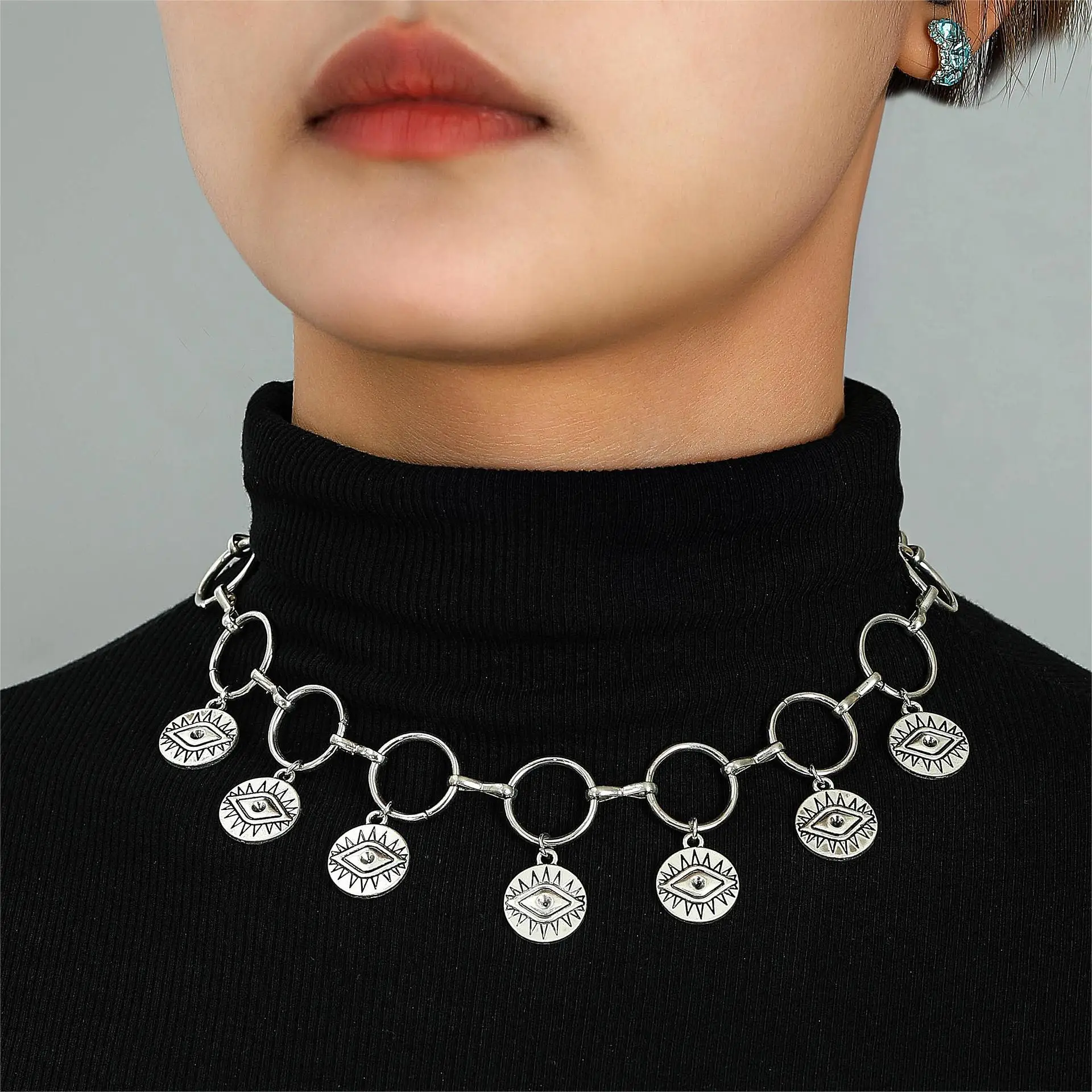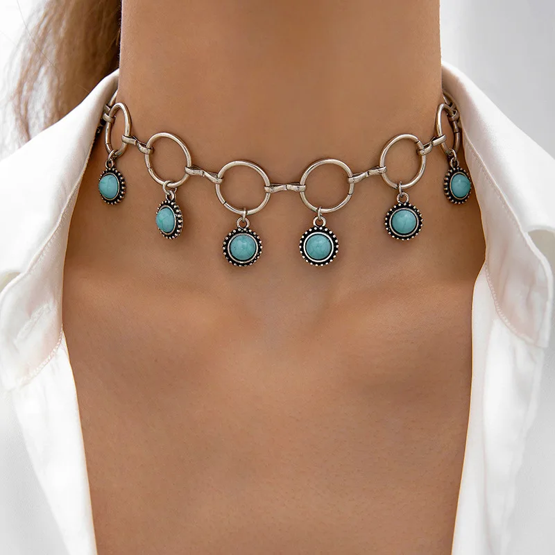 Vintage ethnic style jewelry, creative design, hollowed out carved stone necklace, collarbone chain for women